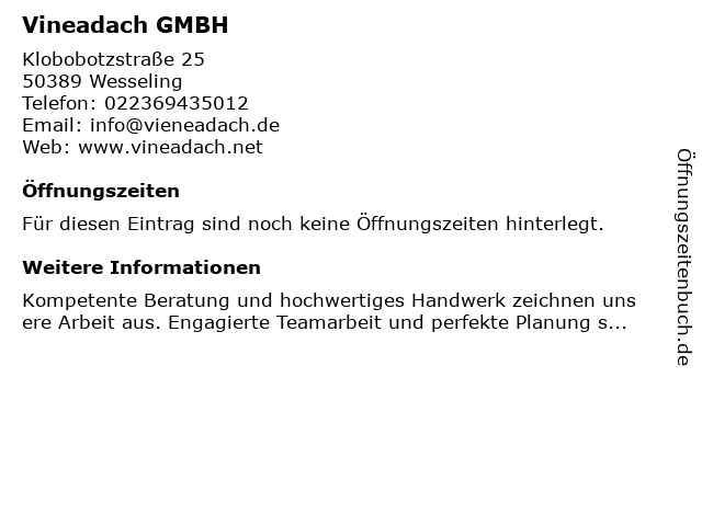 Öffnungszeiten Vineadach GMBH in Wesseling anzeigen | |