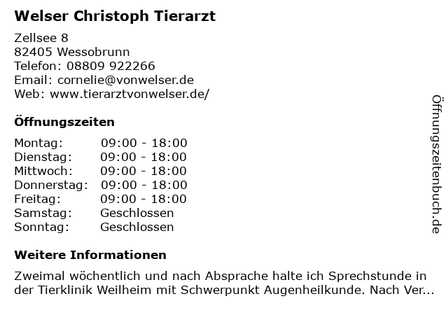 Öffnungszeiten Welser Christoph Tierarzt in Wessobrunn anzeigen | |