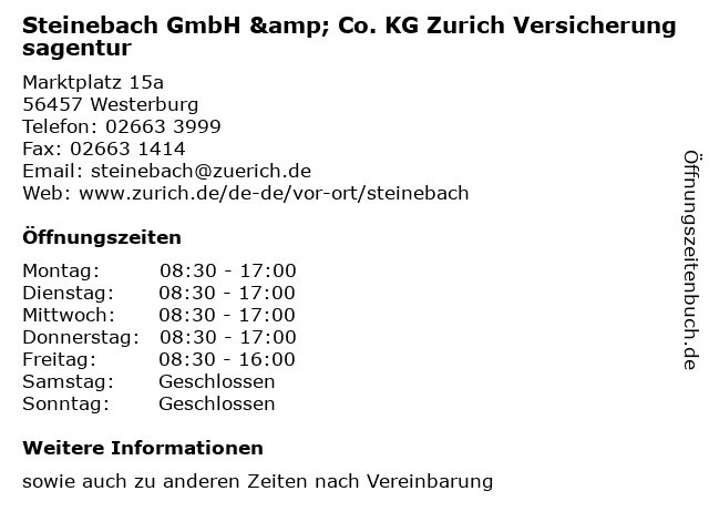 Branchen & Suchbegriffe zu Steinebach GmbH & Co. KG Zurich Versicherungsagentur:bezirksdirektion, erhard, steinebach, vermögensschutz, versicherung, versicherungsagentur, zurich, zürich |
