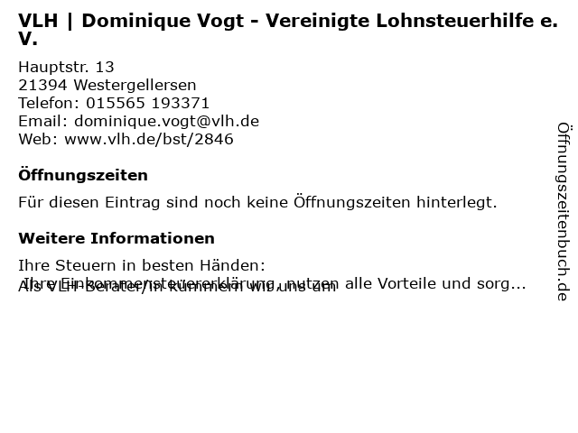 | VLH | Dominique Vogt - Vereinigte Lohnsteuerhilfe e.V. anrufen | |