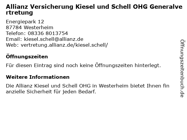 | Allianz Versicherung Kiesel und Schell OHG Generalvertretung anrufen | |