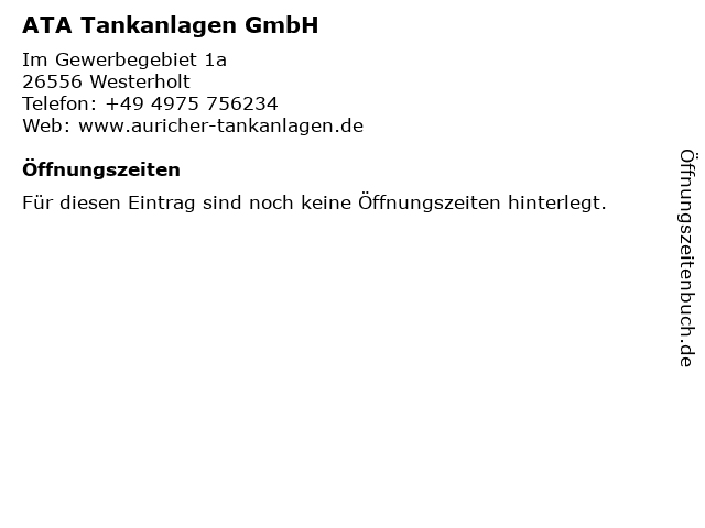| Öffnungszeiten ATA Tankanlagen GmbH in Westerholt anzeigen | |