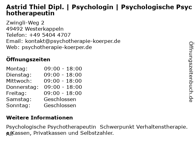 Branchen & Suchbegriffe zu Astrid Thiel Dipl. | Psychologin | Psychologische Psychotherapeutin:astrid, dipl., dipl. psychologin westerkappeln, körperpsychotherapie westerkappeln, psychologin, psychologische, psychologische psychotherapeutin westerkappeln, psychotherapeutin, thiel |