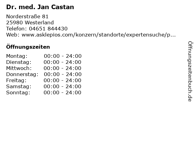 | Telefonnummer Dr. med. Jan Castan in Westerland (04651 844430) anrufen | |