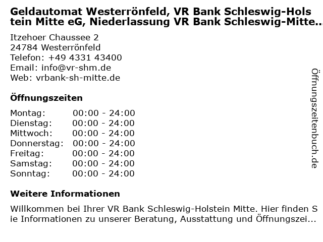 Branchen & Suchbegriffe zu Geldautomat Westerrönfeld, VR Bank Schleswig-Holstein Mitte eG, Niederlassung VR Bank Schleswig-Mitteilholstein:bank, eg, geldautomat, holstein, mitte, mitteilholstein, niederlassung, vr, westerrönfeld |