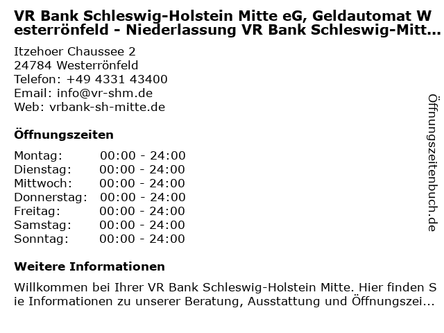 Branchen & Suchbegriffe zu VR Bank Schleswig-Holstein Mitte eG, Geldautomat Westerrönfeld - Niederlassung VR Bank Schleswig-Mitteilholstein:bank, eg, geldautomat, holstein, mitte, mitteilholstein, niederlassung, vr, westerrönfeld |