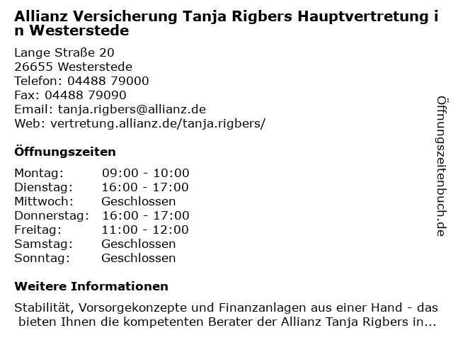 Branchen & Suchbegriffe zu Allianz Versicherung Tanja Rigbers Hauptvertretung in Westerstede:allianz, altersvorsorge, autoversicherung, berufshaftpflichtversicherung, berufsunfähigkeitsversicherung, gebäude- und hausratsversicherung, gewerbeversicherung, hauptvertretung, lebensversicherung, pflegeversicherung, rigbers, tanja, versicherung, westerstede |