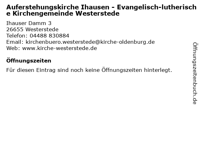 | Auferstehungskirche Ihausen - Evangelisch-lutherische Kirchengemeinde Westerstede anrufen | |