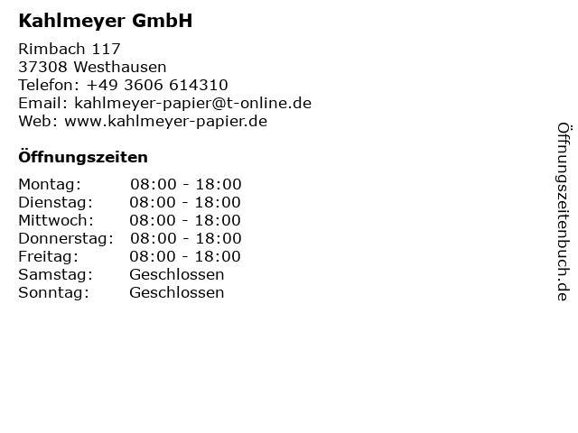 | Öffnungszeiten Kahlmeyer GmbH in Westhausen anzeigen | |