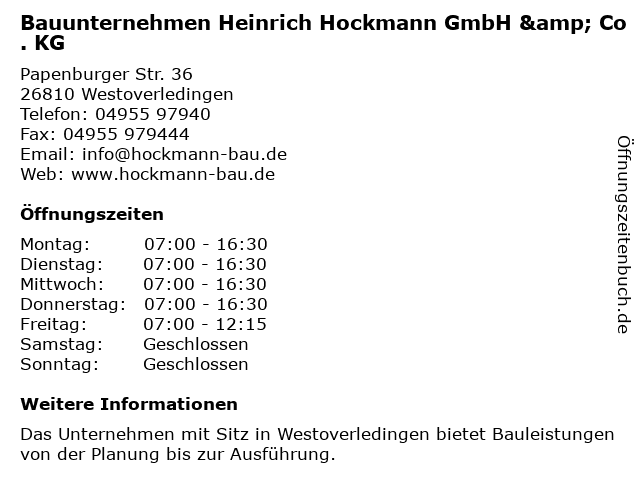 Branchen & Suchbegriffe zu Bauunternehmen Heinrich Hockmann GmbH & Co. KG:bauunternehmen, heinrich, hockmann |