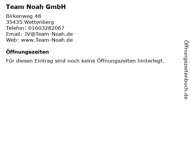 | Öffnungszeiten Team Noah GmbH in Wettenberg anzeigen | |
