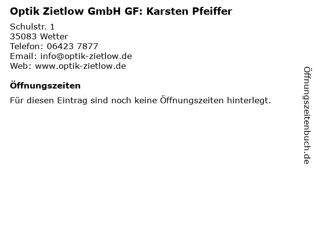 | Optik Zietlow GmbH GF: Karsten Pfeiffer anrufen | |