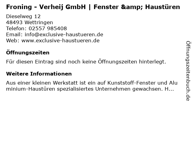 Öffnungszeiten Froning - Verheij GmbH | Fenster & Haustüren