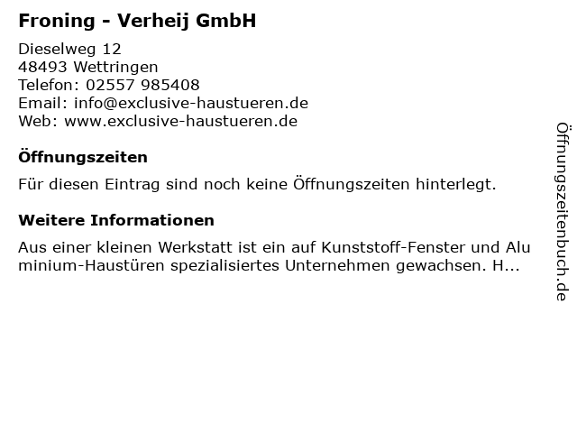 Öffnungszeiten Froning - Verheij GmbH
