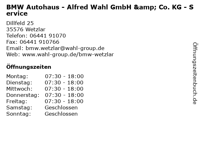 2 BMW Autohaus - Alfred Wahl GmbH & Co. KG - Teile und Zubehör (Entfernung: 0,00 km) Dillfeld 25, 35576 Wetzlar 6  |