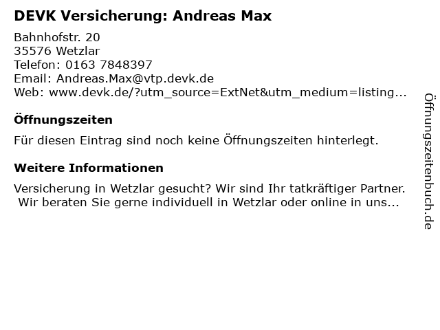 | DEVK Versicherung: Andreas Max anrufen | |