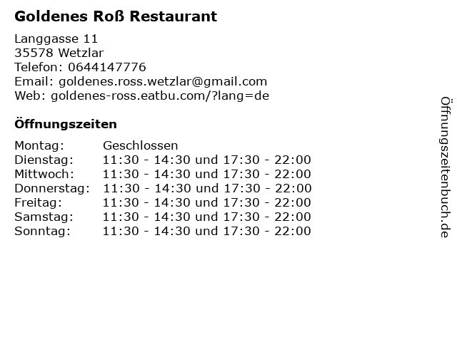 | Öffnungszeiten Goldenes Roß Restaurant in Wetzlar anzeigen | |
