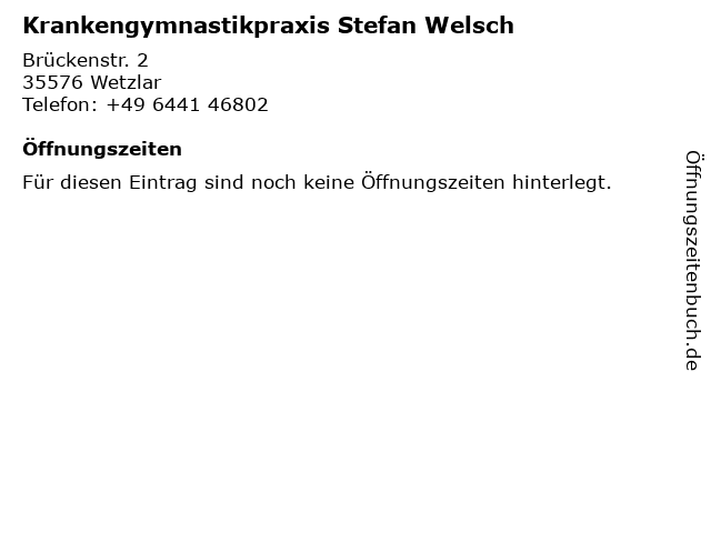 | Krankengymnastikpraxis Stefan Welsch anrufen | |