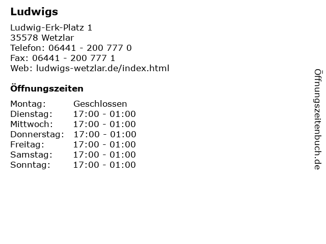 | Öffnungszeiten Ludwigs in Wetzlar anzeigen | |