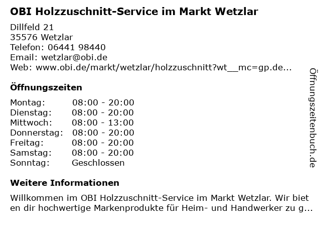 Branchen & Suchbegriffe zu OBI Holzzuschnitt-Service im Markt Wetzlar:anbieter für holz, holzzuschnitt, markt, obi, service |