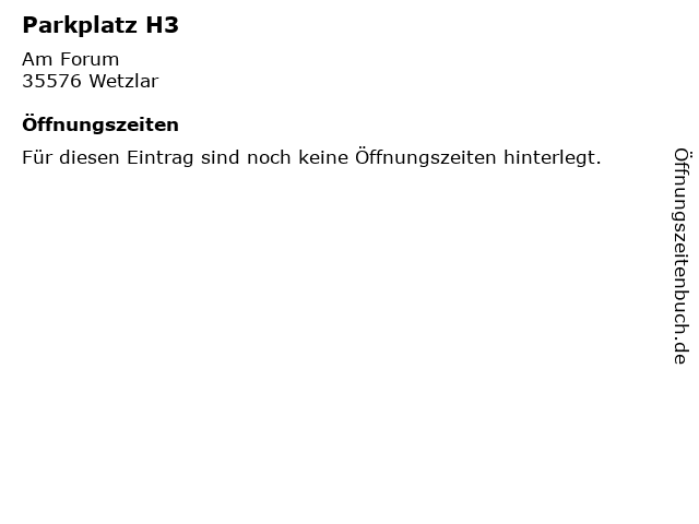 | Öffnungszeiten Parkplatz H3 in Wetzlar anzeigen | |
