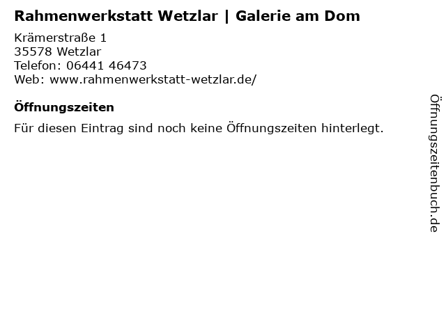 | Rahmenwerkstatt Wetzlar | Galerie am Dom anrufen | |