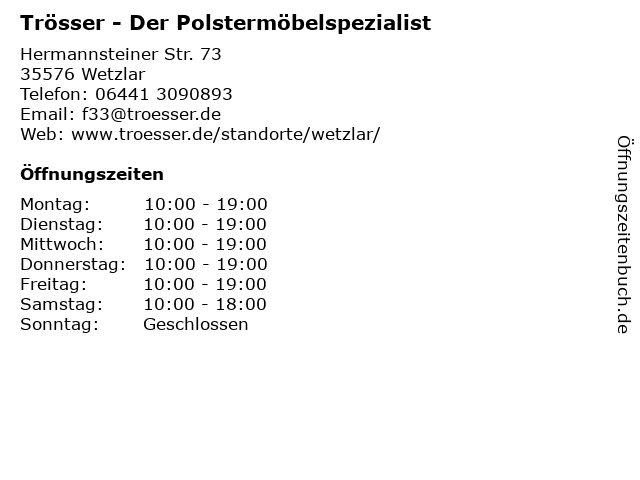 1 Uni Polster Verwaltung GmbH & Trösser Co. KG (Entfernung: 0,90 km) Hermannsteiner str. 73, 35576 Wetzlar 6 |