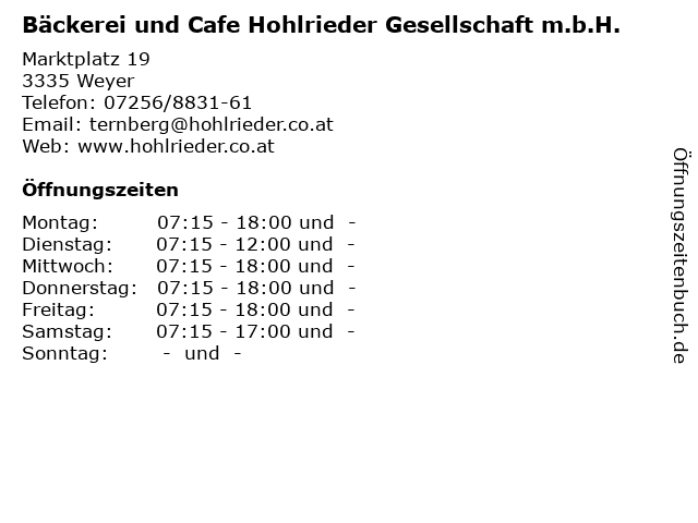 1 Bäckerei und Cafe Hohlrieder Gesellschaft m.b.H. (Entfernung: 9,18 km) Eisenstraße 24, 4463 Großraming 6 |