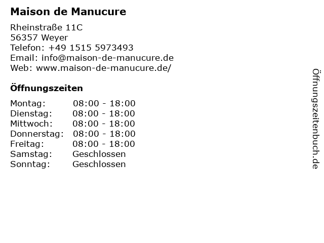 | Telefonnummer Maison de Manucure in Weyer (+49 1515 5973493) anrufen | |