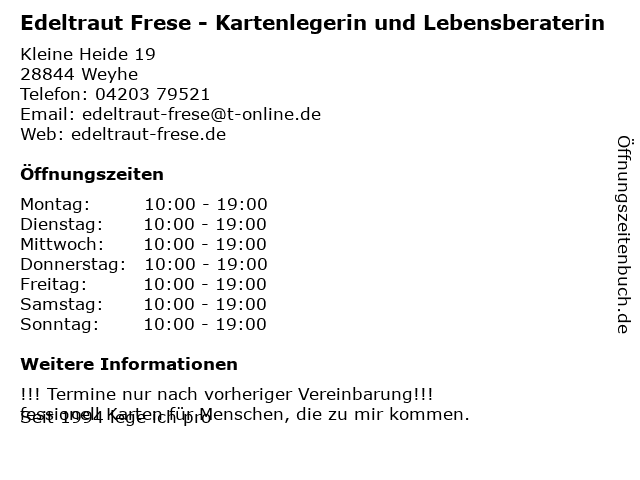 Branchen & Suchbegriffe zu Edeltraut Frese - Kartenlegerin und Lebensberaterin:edeltraut, frese, kartenlegerin, lebensberaterin, sozialarbeit, unternehmen für solarenergie |