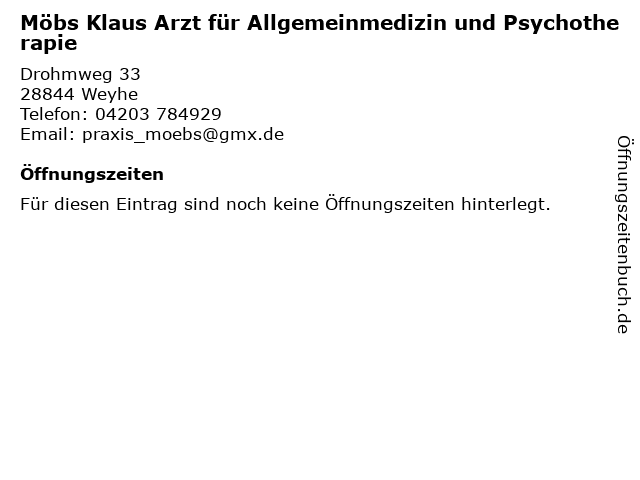 | Möbs Klaus Arzt für Allgemeinmedizin und Psychotherapie anrufen | |