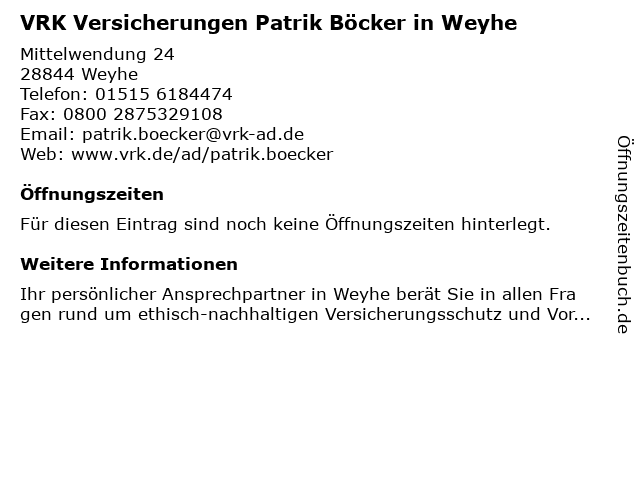 | VRK Versicherungen Patrik Böcker in Weyhe anrufen | |