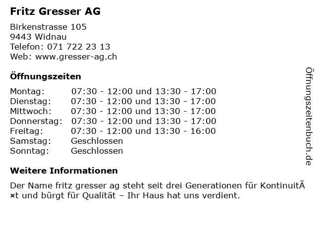 Öffnungszeiten Fritz Gresser AG
