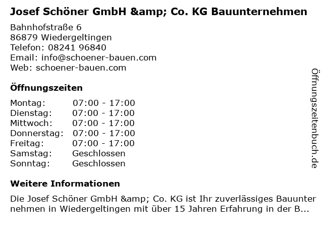 Branchen & Suchbegriffe zu Josef Schöner GmbH & Co. KG Bauunternehmen:bauunternehmen, josef, schöner |