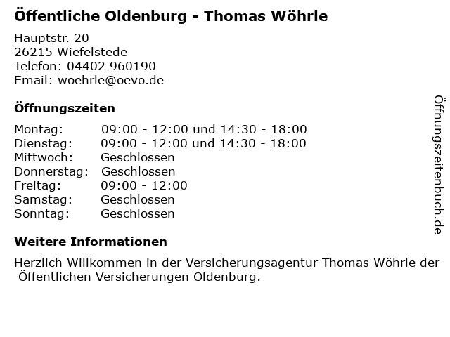 Branchen & Suchbegriffe zu Öffentliche Oldenburg - Thomas Wöhrle:thomas, wöhrle, öffentliche |