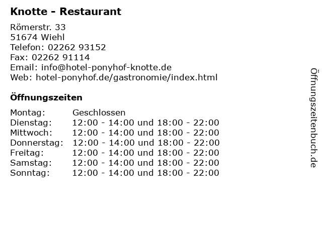 | Öffnungszeiten Knotte - Restaurant in Wiehl anzeigen | |