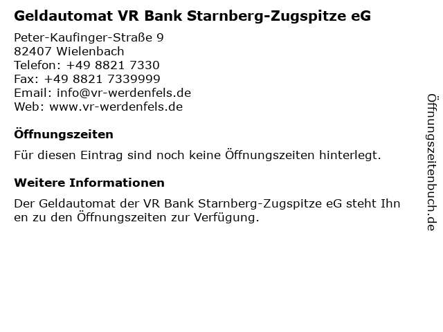 | Geldautomat VR Bank Starnberg-Zugspitze eG anrufen | |