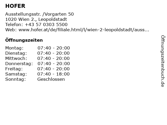 | Öffnungszeiten HOFER in Wien 2., Leopoldstadt anzeigen | |