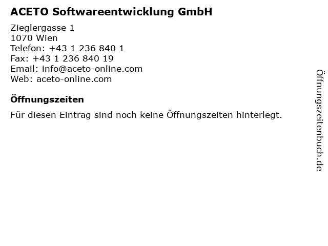 | Öffnungszeiten ACETO Softwareentwicklung GmbH in Wien anzeigen | |