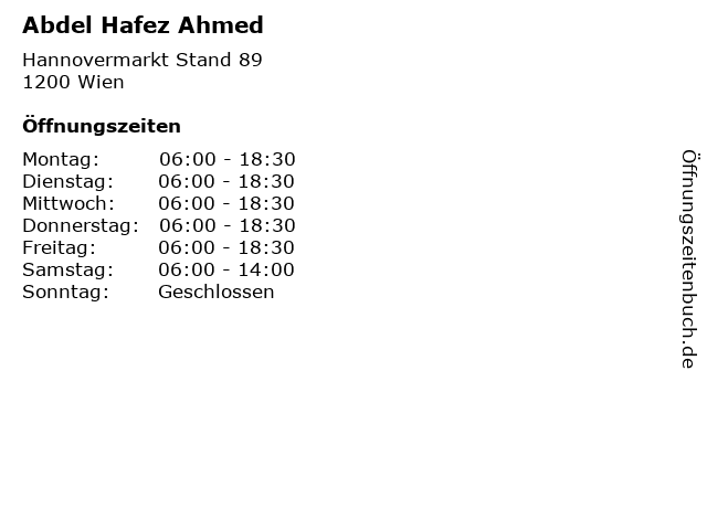 | Öffnungszeiten Abdel Hafez Ahmed in Wien anzeigen | |