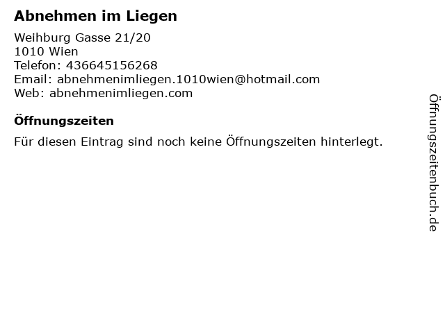 | Öffnungszeiten Abnehmen im Liegen in Wien anzeigen | |