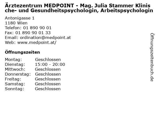 Branchen & Suchbegriffe zu Ärztezentrum MEDPOINT - Mag. Julia Stammer Klinische- und Gesundheitspsychologin, Arbeitspsychologin:arbeitspsychologin, arzt, büro, gesundheitspsychologin, julia, klinik, klinische, krankenhaus, mag., medizin, medpoint, mvz, praxis, stammer, therapie, ärztezentrum |