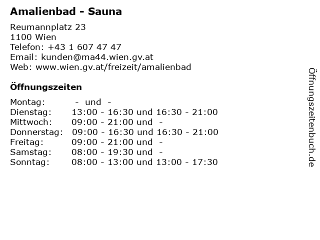 | Öffnungszeiten Amalienbad - Sauna in Wien anzeigen | |