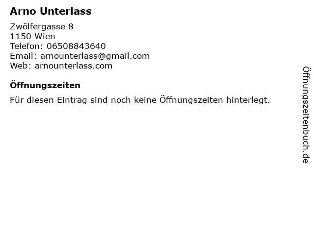 | Öffnungszeiten Arno Unterlass in Wien anzeigen | |