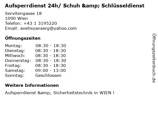 Branchen & Suchbegriffe zu Aufsperrdienst 24h/ Schuh & Schlüsseldienst:24h/, aufsperrdienst, installation und reparatur von schlössern, lederreparatur, notdienst für türöffnngen, rund um die uhr aufsperrdienst, schließzylinder nd türbeschläge, schlüssel, schlüssel zubehör, schlüsseldienst, schnelle ankunft bem kunden, schuh, schuhreparatur, schuhzubehör, taschenreparatur, wartung und reparatur von zylinderschlössern jeder art, öffnung ohne beschädigng |