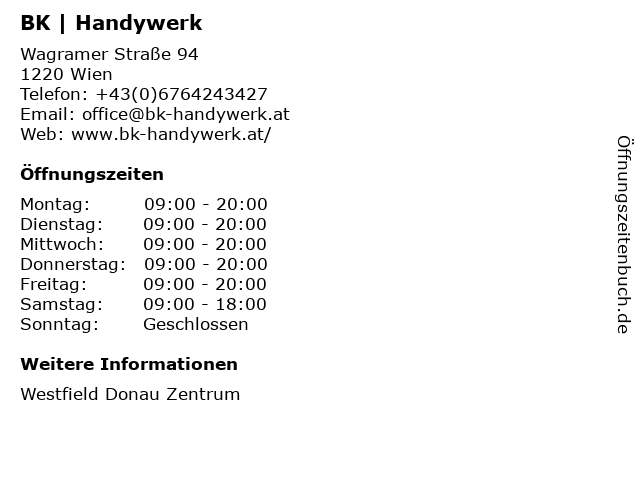 | Öffnungszeiten BK | Handywerk in Wien anzeigen | |