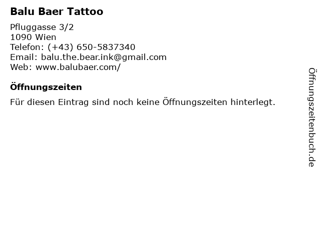 | Öffnungszeiten Balu Baer Tattoo in Wien anzeigen | |
