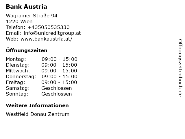 | Öffnungszeiten Bank Austria in Wien anzeigen | |