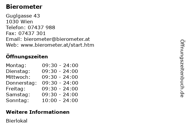| Öffnungszeiten Bierometer in Wien anzeigen | |