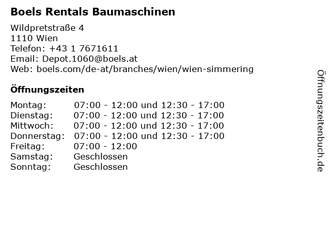 | Öffnungszeiten Boels Rentals Baumaschinen in Wien anzeigen | |